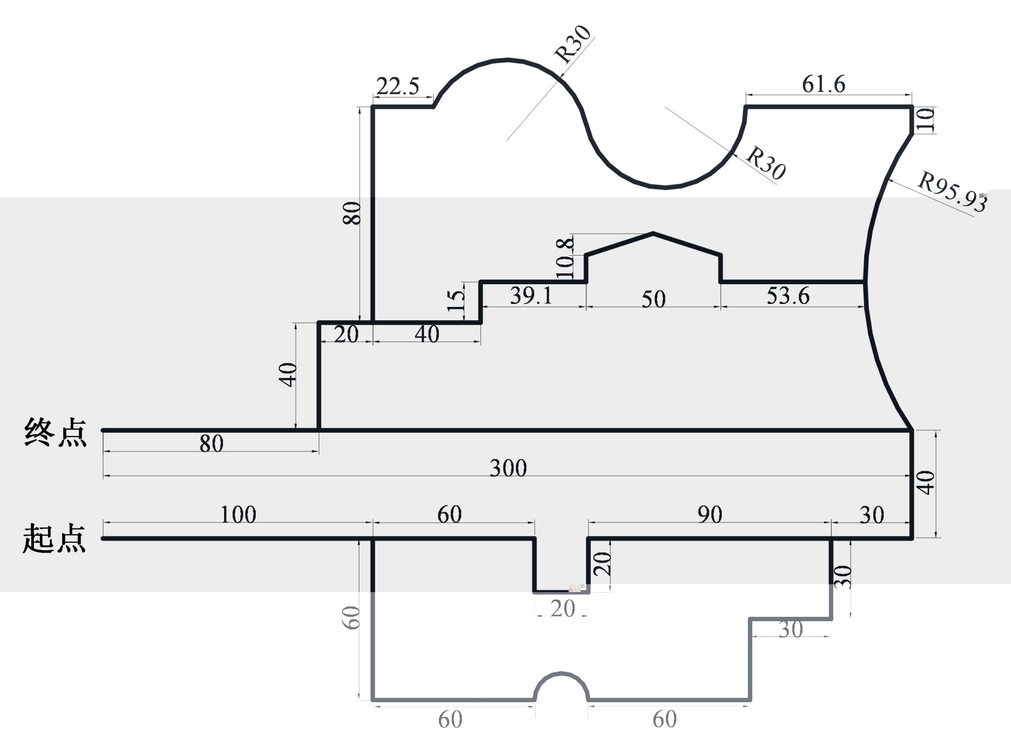 采用黑色電工膠帶鋪設賽場,寬度2.5mm,賽場橫向長度3m;按比例鋪設其他賽道長度,賽道示意圖如圖1所示。