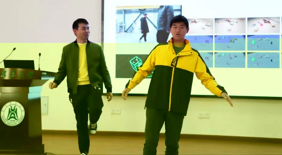 李明首先以室内三維感知與視覺定位技術為引對自主無人機進行了介紹,他談到,自主無人機是目前的研究熱點,但國内針對無人機的研究主要集中在實時測圖、分析建模等方面,對自主無人機的研究領域涉及較少。随後,李明詳細講解了自主無人機導航定位避障的完整技術流程,他指出,對于大型倉庫,使用傳統的方式去盤點上百萬貨物産生的損耗是極大的,而使用無人機技術可以減少相當于5000輛燃油汽車一年的碳消耗。在無人機研發中,視覺系統扮演了一個非常重要的角色,為解釋視覺的重要性,李明邀請學生上台做了一個小遊戲,單腳站立,肢體穩定,但閉上眼睛後,身體便開始晃動,生動形象的解釋了視覺穩定功能。
