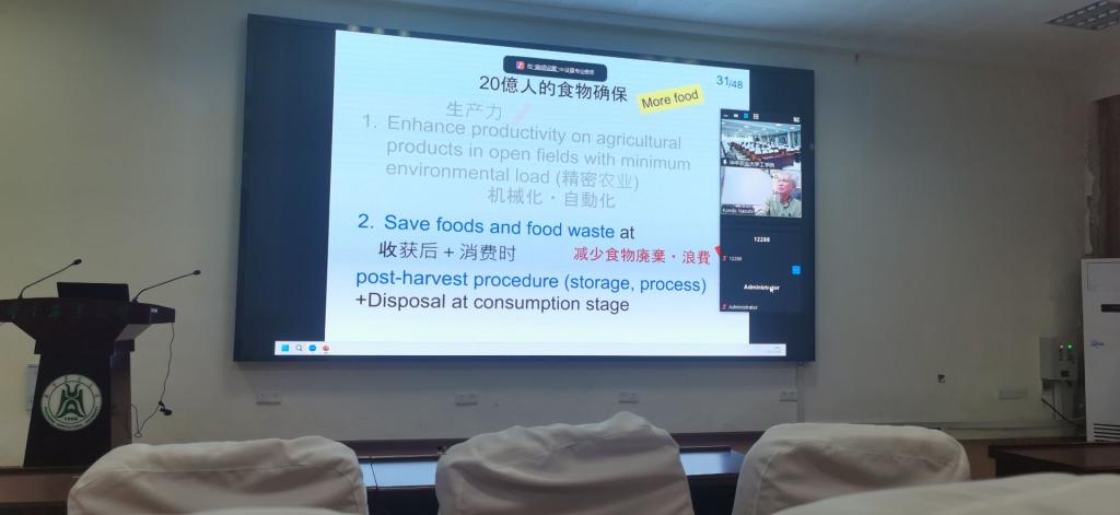 講座伊始,近藤直教授詳細介紹了全球人口數量以及人口增長率的現狀,然後提出全球人均耕地面積減少以及土壤裂化等相關問題。通過分析各洲主要種植的糧食作物,提出了食品和環境問題的交叉課題。如何确保20億人的食物安全?近藤直教授提出,農學、工學、信息學的融合發展是有效的解決措施,并從産出(機械化和自動化)和産後(檢測)兩個方面展開讨論。
