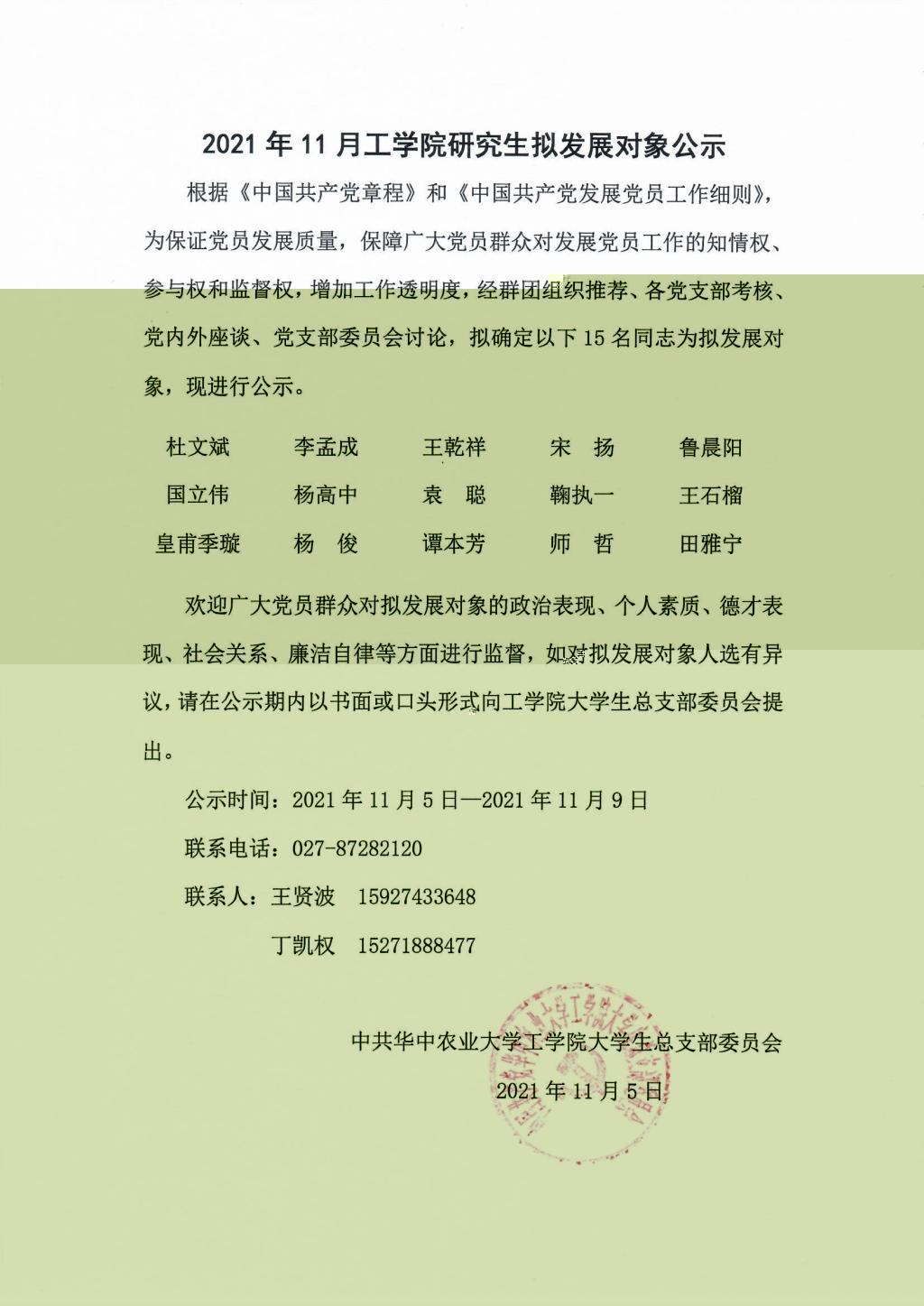 【研】2021年11月yl7703永利研究生拟發展對象公示