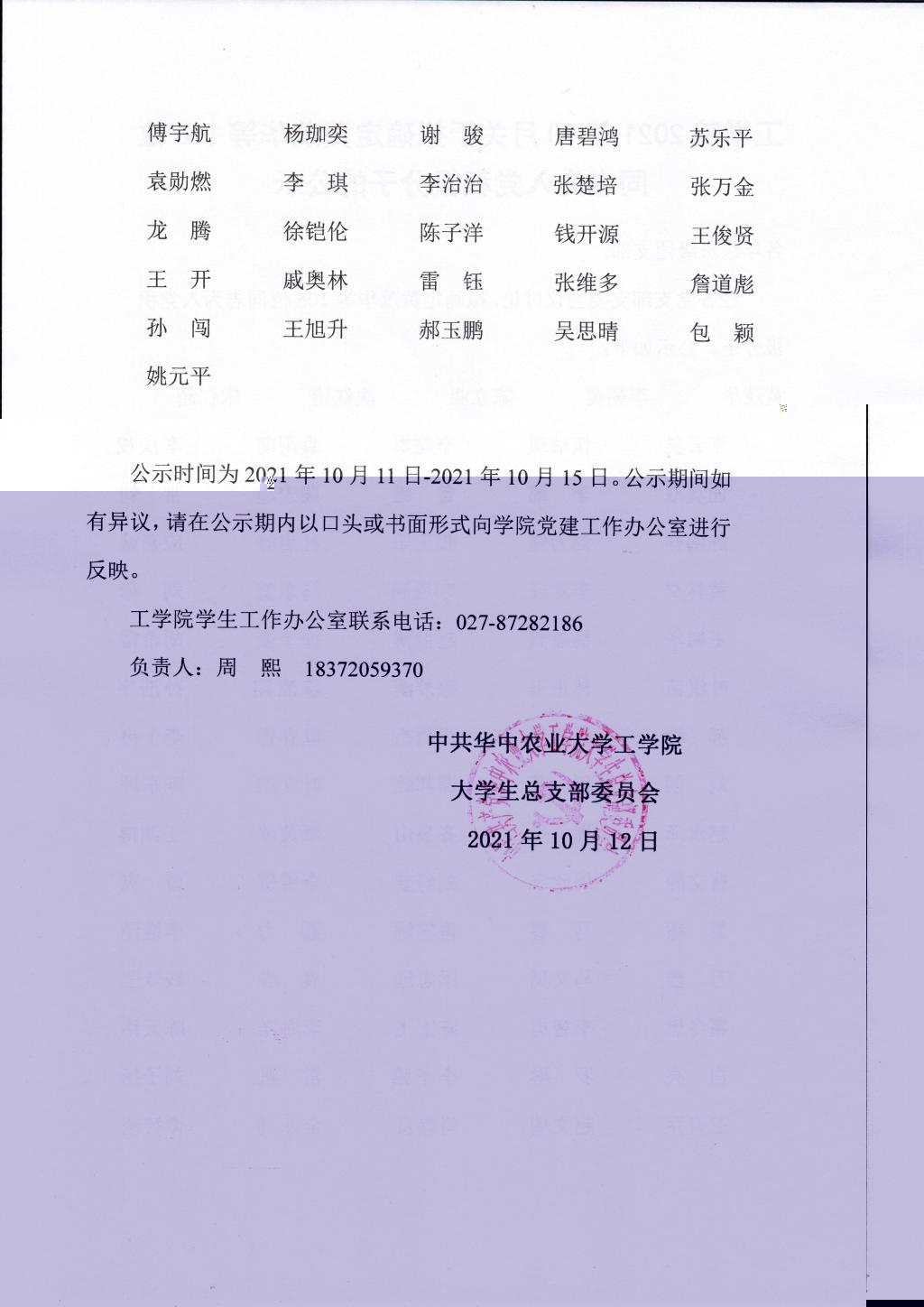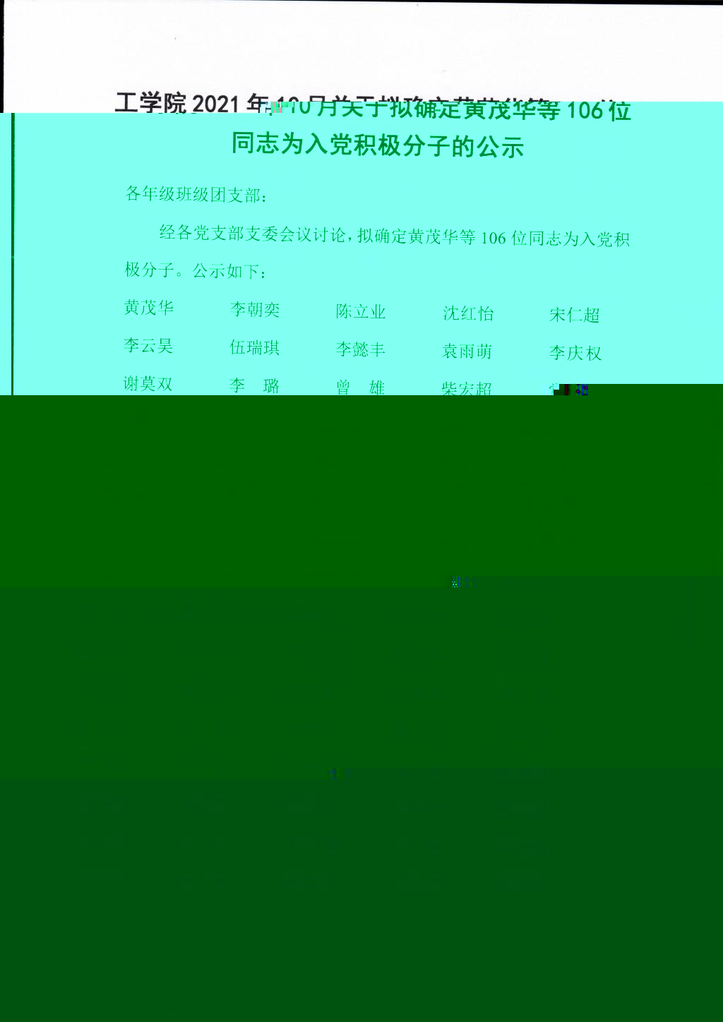 yl7703永利2021年10月關于拟确定黃茂華等106位同志為入黨積極分子的公示