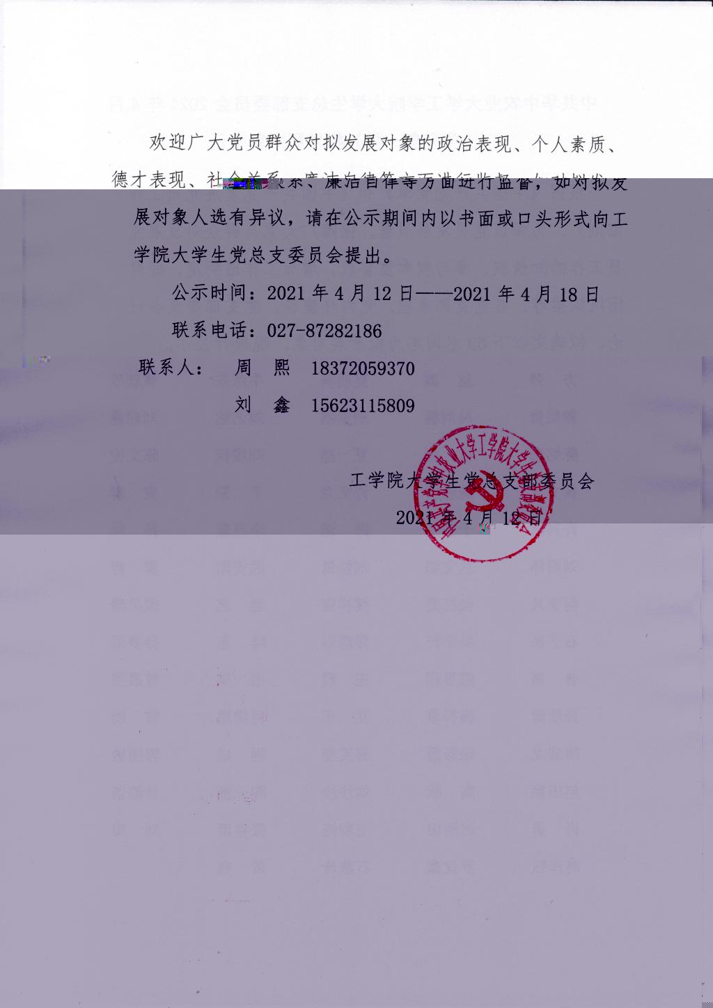 中共yl7703永利大學生總支部委員會2021年4月(上半年第一批)拟發展對象公示