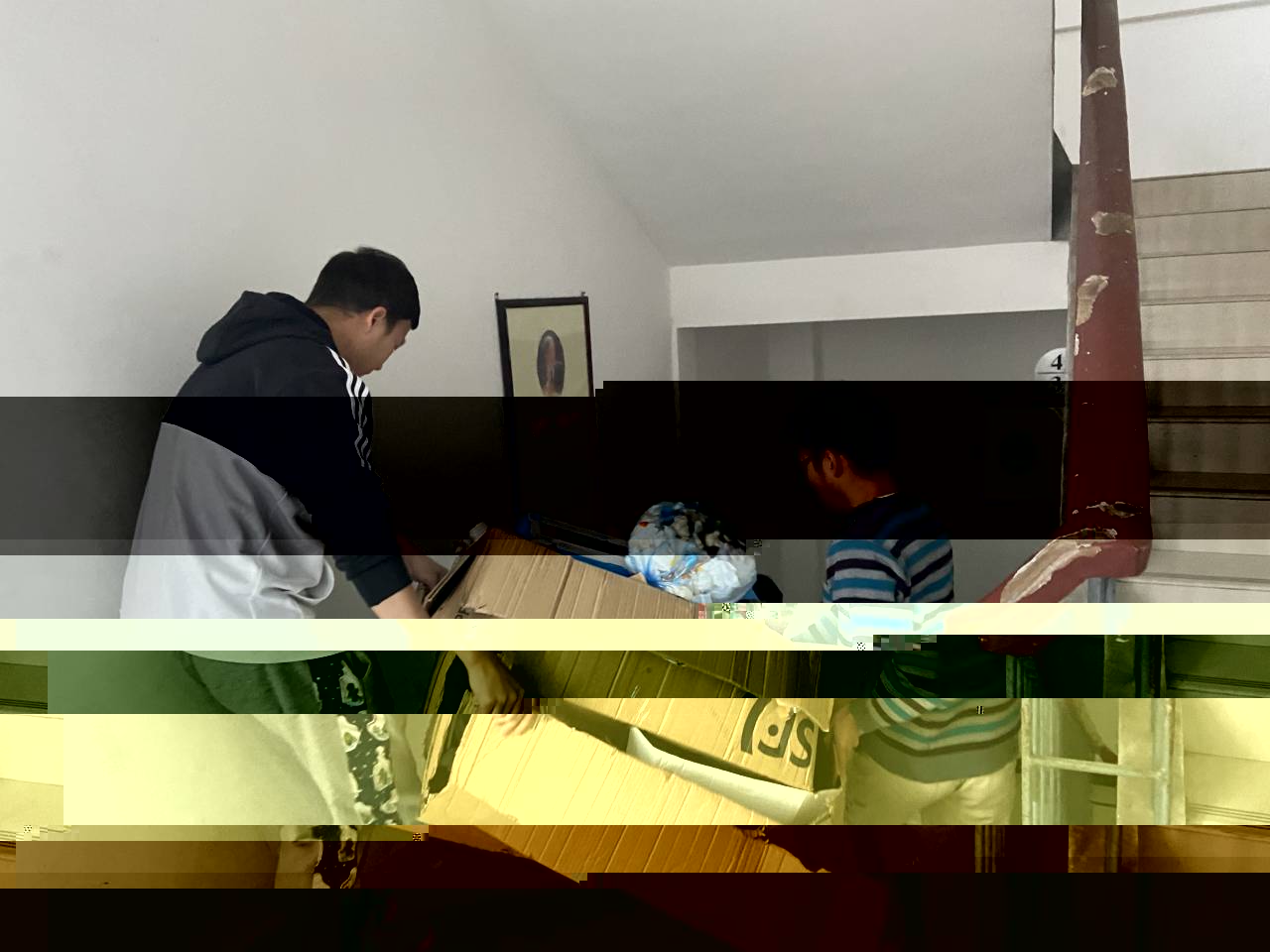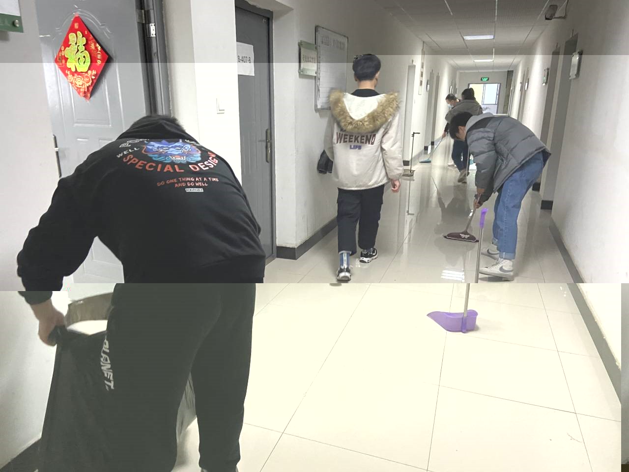 室内清掃結束後,大家積極配合學院保潔人員的工作,将清理出來的垃圾雜物一同搬運到樓下垃圾集中存放點。