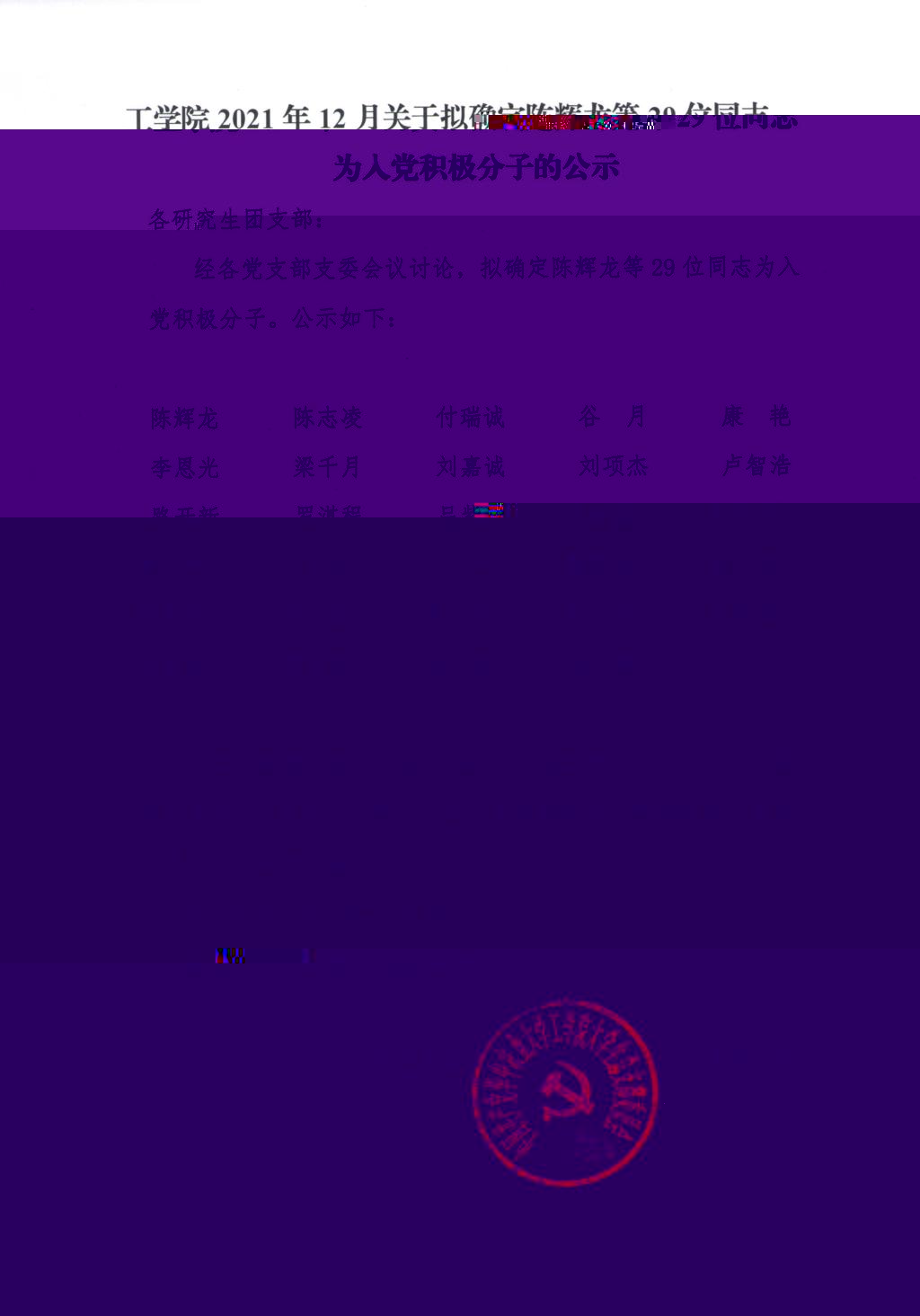 【研】yl7703永利2021年12月關于拟确定陳輝龍等29位同志為入黨積極分子的公示