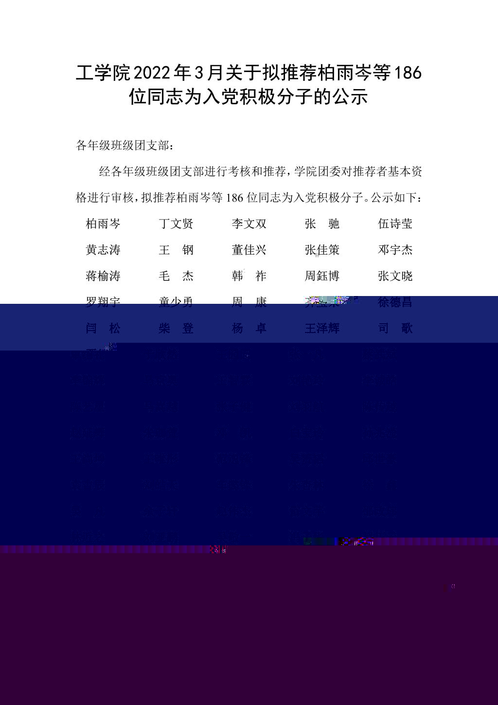 yl7703永利2022年3月關于拟推薦柏雨岑等186位同志為入黨積極分子的公示