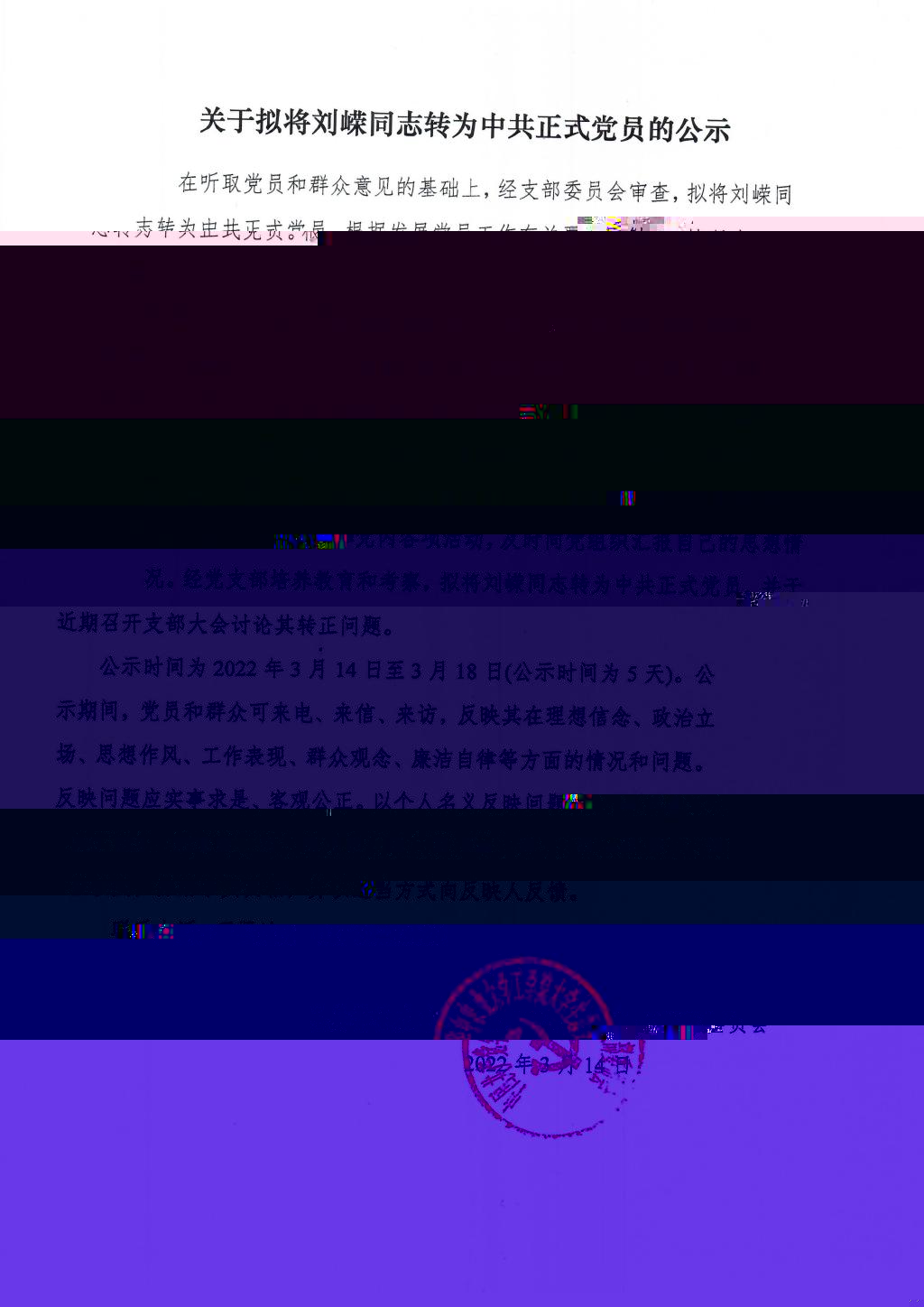 【研】關于拟将劉嵘同志轉為中共正式黨員的公示
