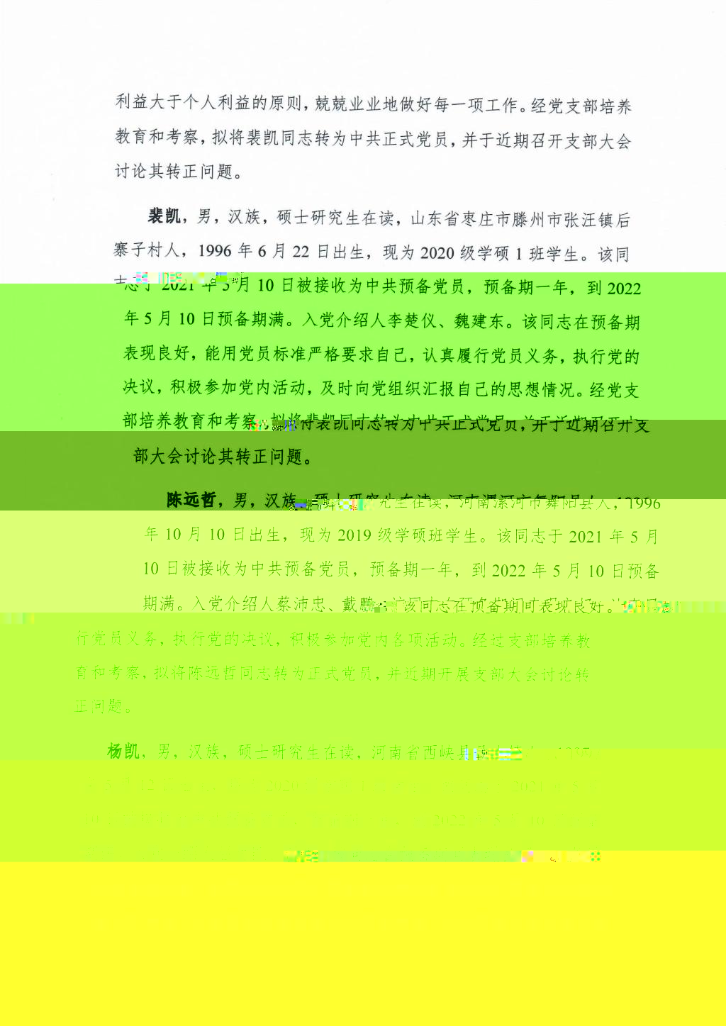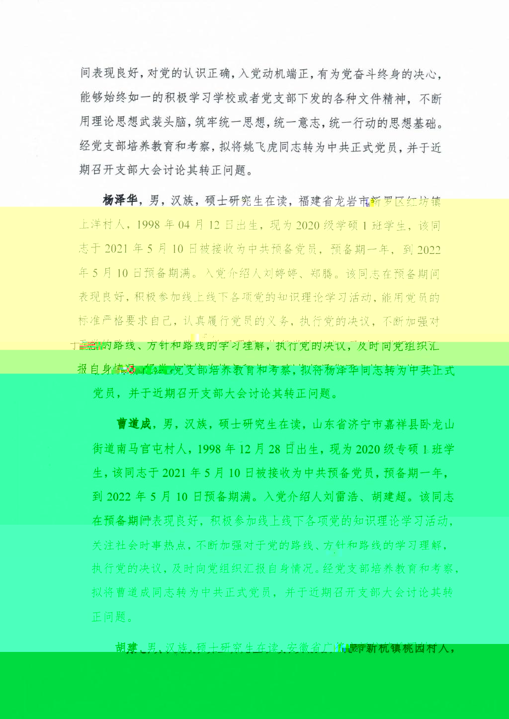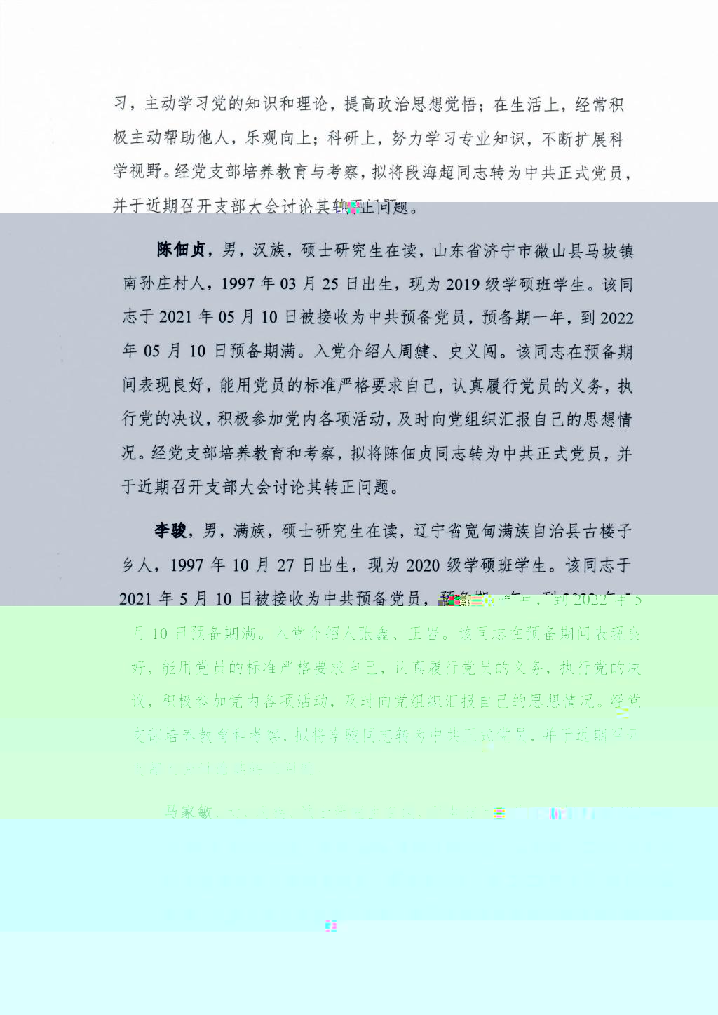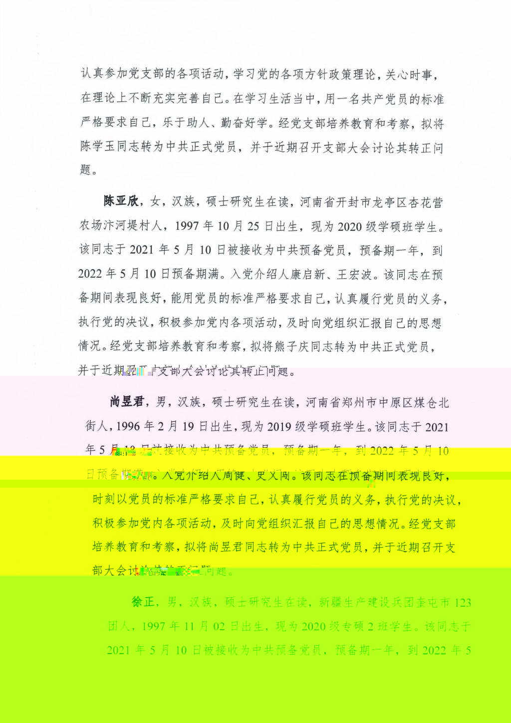 【研】關于拟将熊子慶等29名同志轉為中共正式黨員的公示