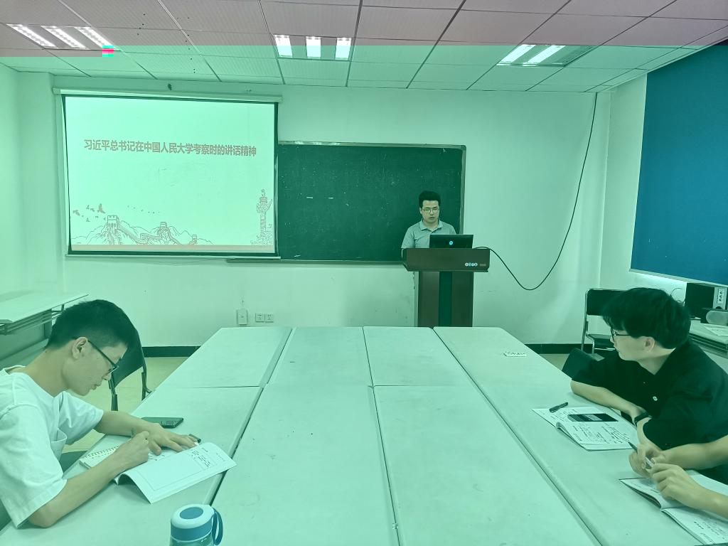 劉成康同志在領學習近平總書記在中國人民大學考察時的講話精神後分享到,我們作為研究生,不能把自己局限在小小的工作室,要用雙腳去丈量祖國大地,感受茫茫戈壁灘,領略澄澈淳樸的西藏;用眼睛發現中國精神,去學習林俊德院士的敬業之心、愛國之心、将最後一次心跳獻給祖國的赤子之心。我們作為研究生黨員,要立足新時代征程,牢記黨的教誨,立志民族複興,不負韶華,不負時代,不負人民,在青春的賽道上奮力奔跑,争取跑出當代青年的最好成績!