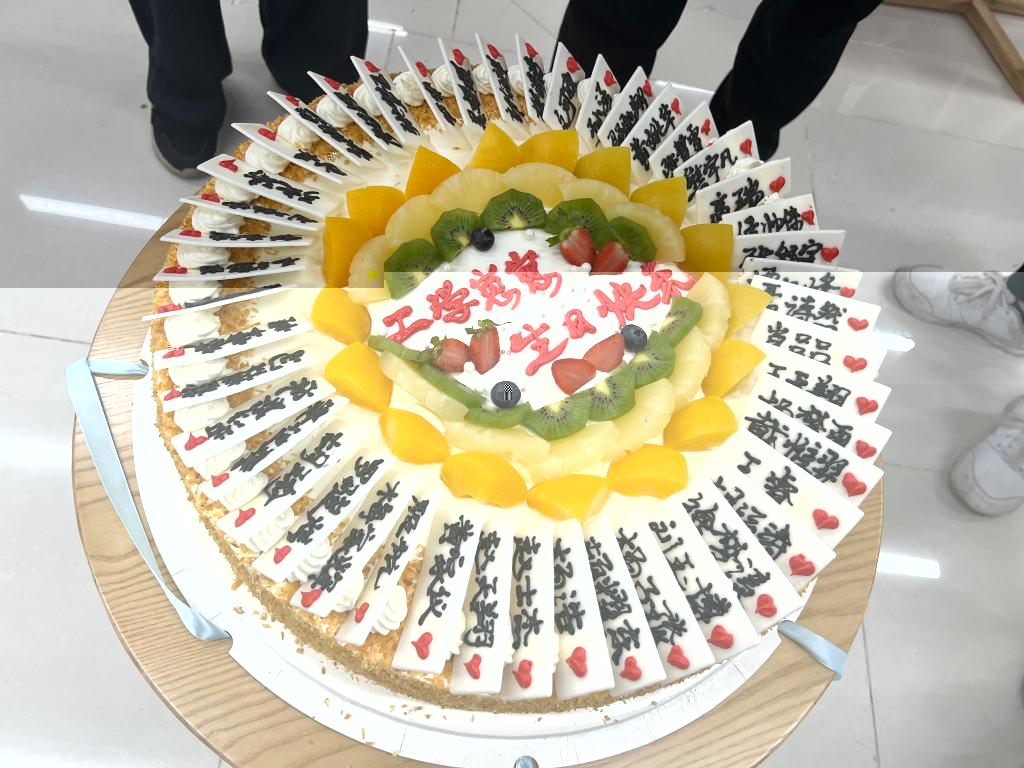 “工學崽崽們,生日快樂!”輔導員鄧秋雨老師手裡拿着蛋糕盒出現在了會場中間,随着蓋子緩緩揭開,同學們眼前一亮,承載着46位小壽星名字的蛋糕出現在大家眼前,大家紛紛上前尋找自己的名牌打卡留念。“已經好久沒有跟人一起慶祝過生日了,真沒想過18歲生日是這種形式,這是我過的最難忘最有意義的一個生日了。”來自棗陽的劉玉博熱淚盈眶。