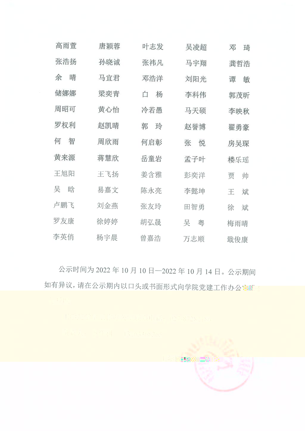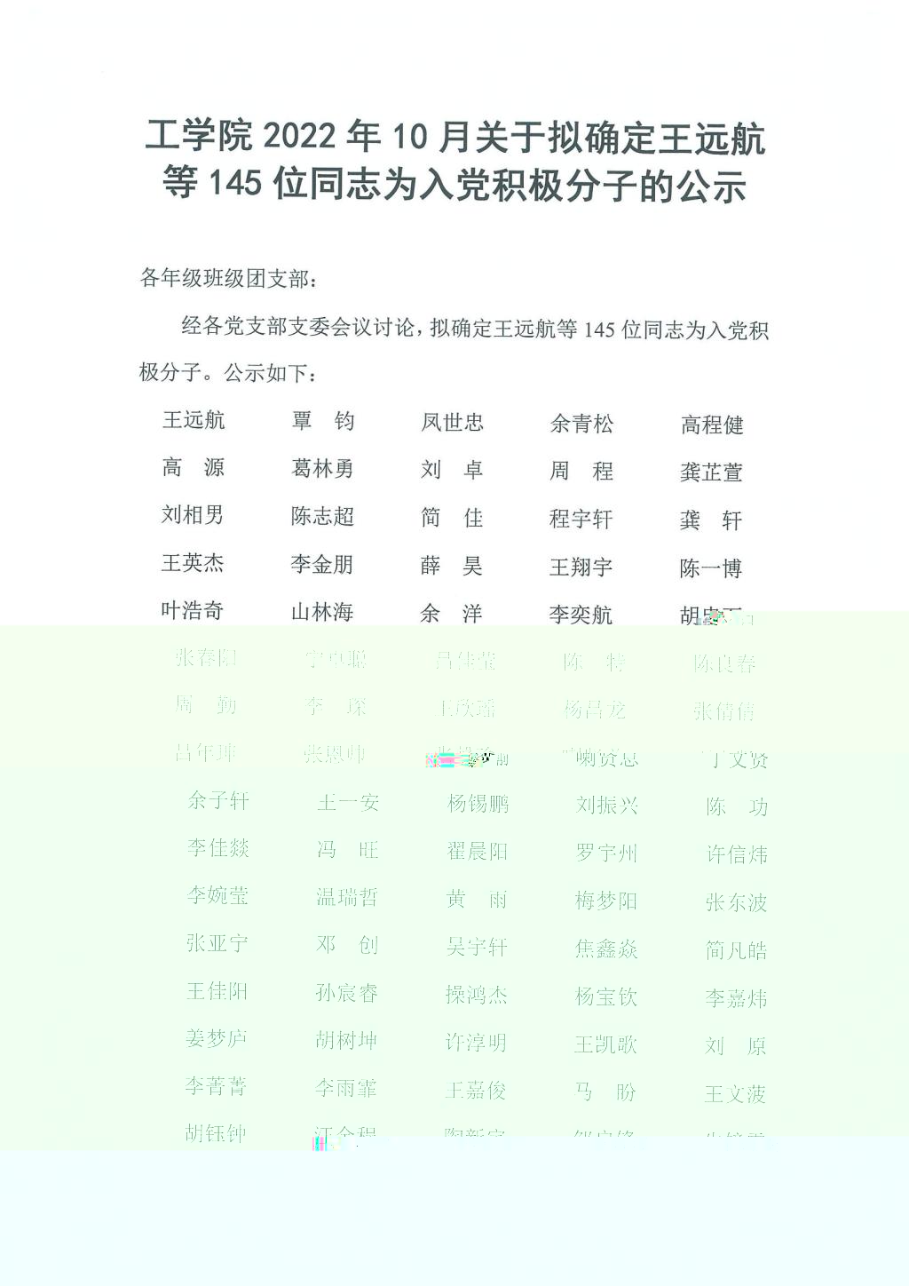 yl7703永利2022年10月關于拟推薦王遠航等145位同志為入黨積極分子的公示