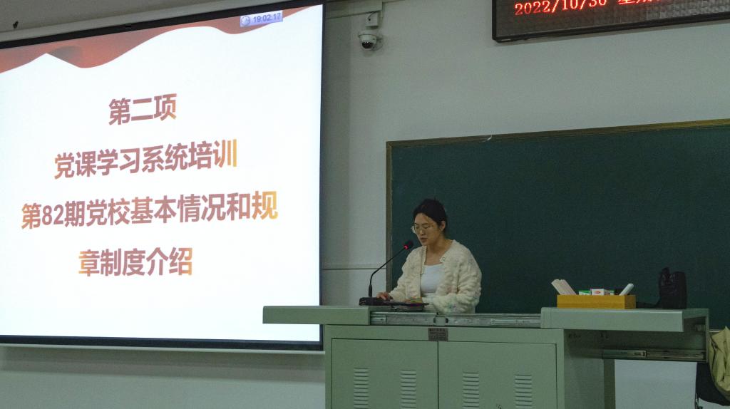 10月30日晚,yl7703永利第82期黨校培訓班順利開班。來自2020級、2021級的145名入黨積極分子在三教C105教室參加開班儀式,人力資源部周熙老師為入黨積極分子們帶來了《中國共産黨黨員的條件、義務和權利》的專題培訓。