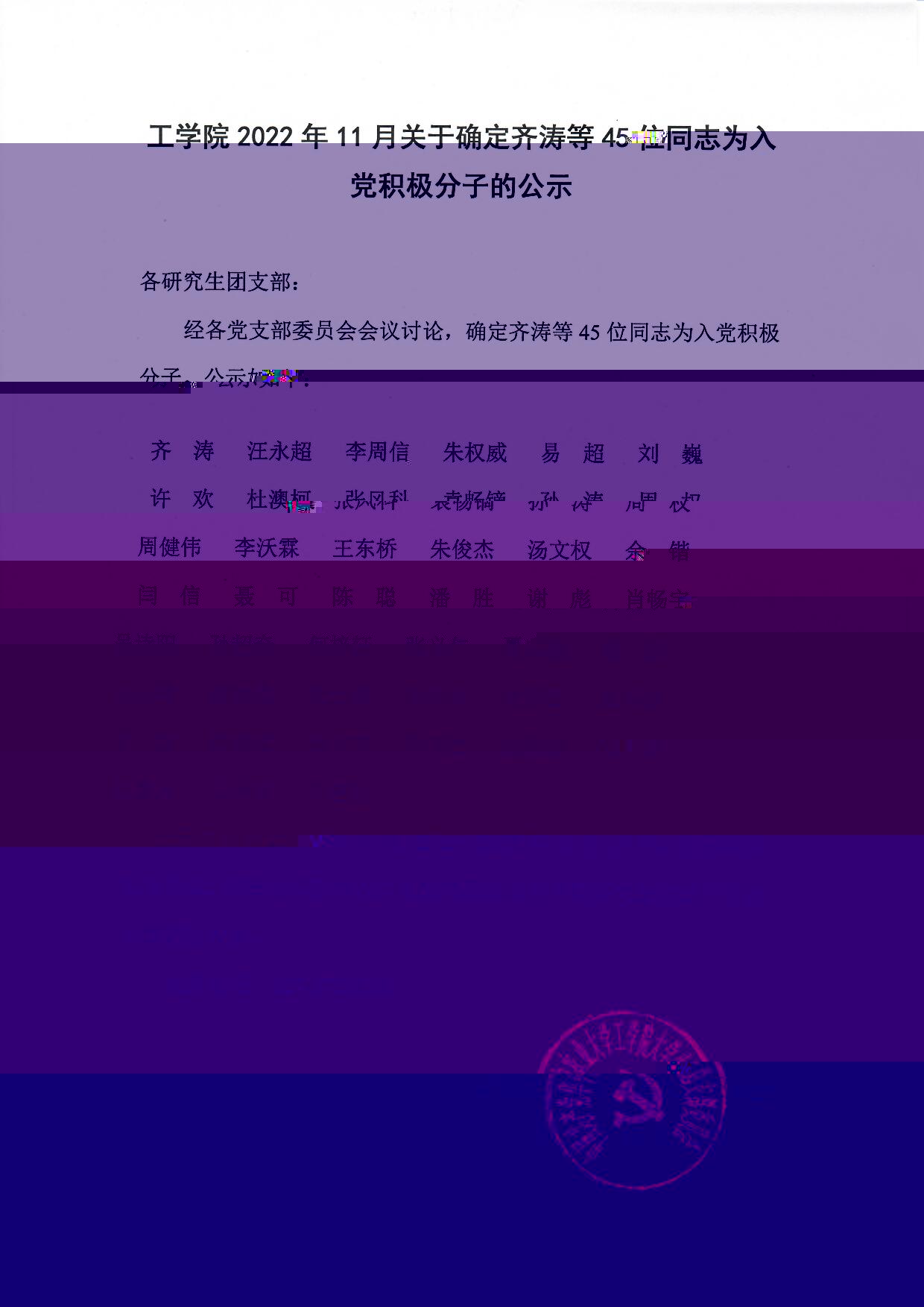 【研】yl7703永利2022年11月關于确定齊濤等45位同志為入黨積極分子的公示