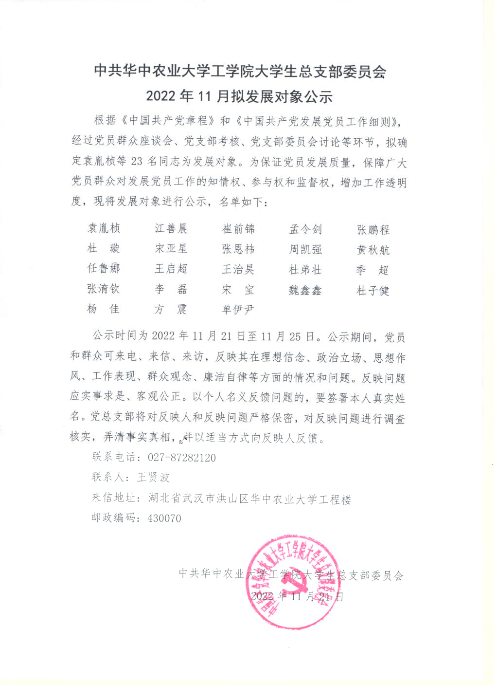 【研】中共yl7703永利大學生總支部委員會2022年11月拟發展對象公示
