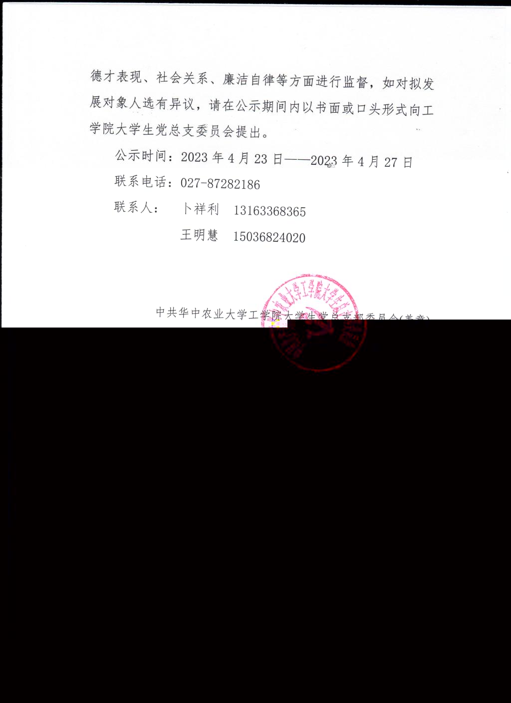 中共yl7703永利大學生總支部委員會2023年4月拟發展對象公示