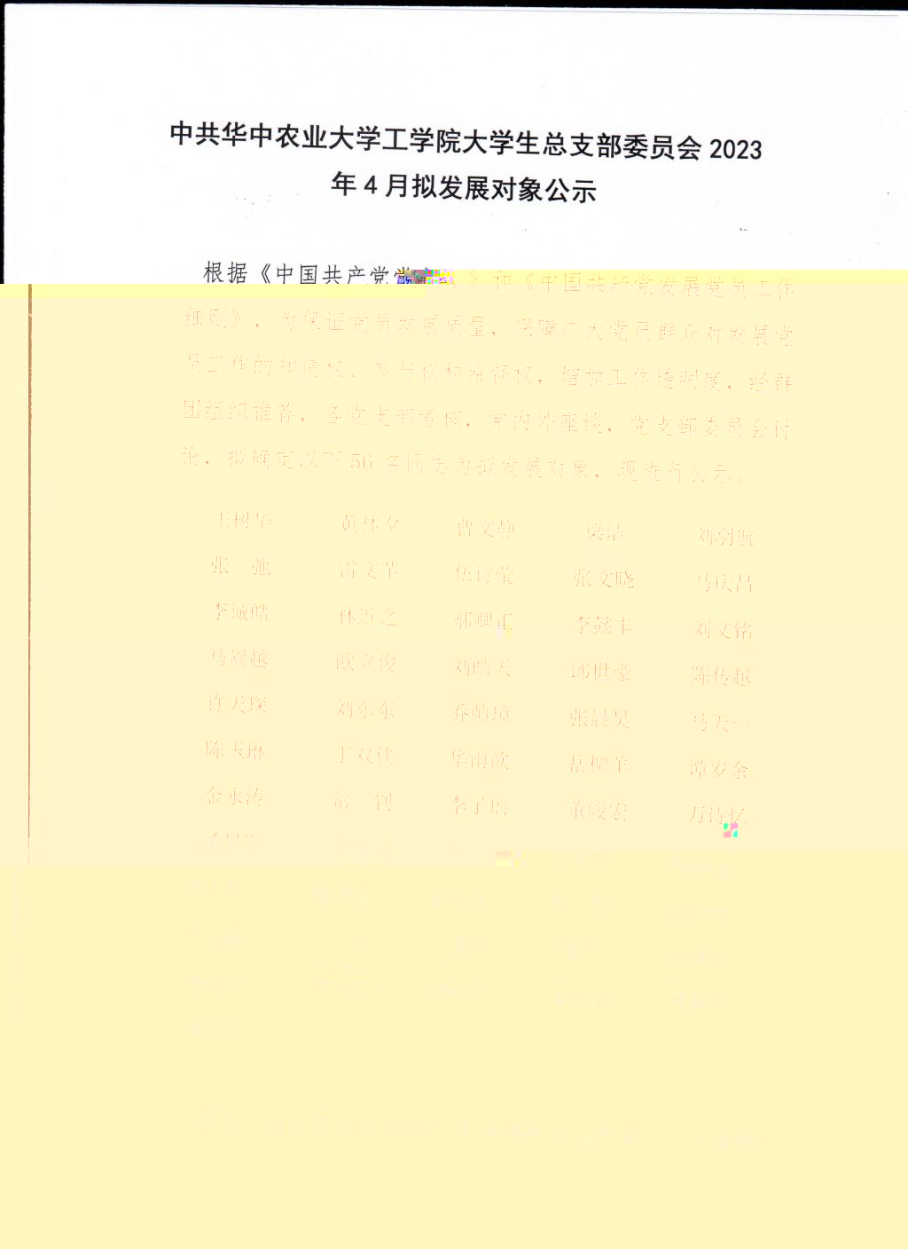 【研】中共yl7703永利大學生總支部委員會2023年4月拟發展對象公示