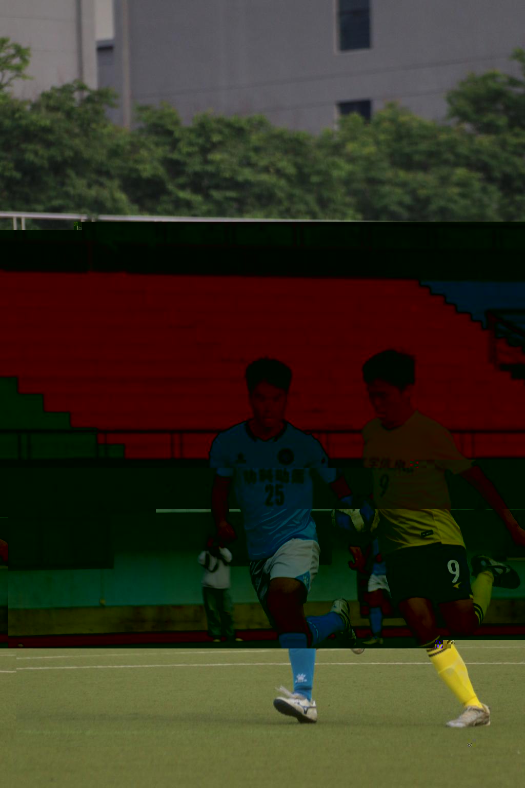 先進一球的工信聯隊繼續穩紮穩打,穩定戰局,但動科動醫學院在短暫調整後,積極組織進攻,工信聯隊後衛壓力驟增。第30分鐘,動科動醫學院20号匡磊接球沿右路突破後,将球傳給快速插上的4号王定一,戰局頓時十分混亂,工信聯隊1号門将沈威見此情形棄門而出,試圖封堵對方射門角度,然而動科動醫學院王定一帶球晃過出擊的門将,射門得分,工信聯隊被扳平比分。