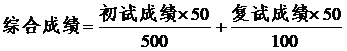 綜合成績:評定采用百分制,其中初試成績占50%,複試成績占50%,按下列公式計算綜合成績: