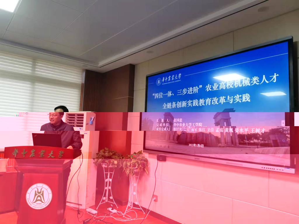 鑒定會上,《基于多學科交叉融合的農林院校農業工程人才培養模式探索與實踐》和《“四位一體、三步進階”農業高校機械類人才全鍊條創新實踐教育改革與實踐》兩項教學成果負責人廖慶喜教授、張國忠教授分别從成果主要内容、主要解決的問題與方法、成果創新點及成果推廣應用情況等方面進行了彙報,專家組在聽取項目負責人彙報、審閱相關資料的基礎上對兩項教學成果進行了認真細緻的評議。專家一緻肯定了兩項教學成果,認為教學成果工作紮實、成效顯著,同時希望進一步強化特色、加強推廣,并建議根據湖北省教學成果獎申報要求認真準備申報材料。