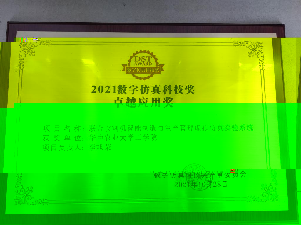 2021年11月12日-14日,第17屆中國CAE工程分析技術年會暨第3屆中國數字仿真論壇在海南省海口市海南國際會議展覽中心隆重召開。我院李旭榮老師團隊開發的《聯合收割機智能制造與生産管理虛拟仿真實驗系統》軟件榮獲“2021年數字仿真科技獎-卓越應用獎”。