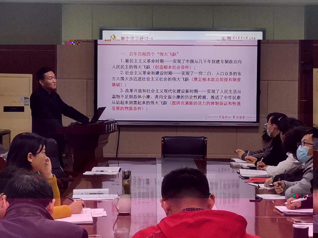 學院黨委書記明庭慶領學十九屆六中全會精神。他談到,全會充分肯定黨的十九屆五中全會以來中央政治局的工作,并從三個方面總結黨的百年奮鬥重大成就和曆史經驗是三個“需要”。從黨的百年奮鬥中看清楚過去我們為什麼能夠成功、弄明白未來我們怎樣才能繼續成功,從而更加堅定、更加自覺地踐行初心使命,在新時代更好堅持和發展中國特色社會主義。他強調,堅強的領導核心和科學的理論指導,是關乎黨和國家前途命運、黨和人民事業成敗的根本性問題。黨中央有核心、全黨有核心,黨才有力量。我們要深刻領悟“兩個确立”的決定性意義,更加緊密地團結在以習近平同志為核心的黨中央周圍,勠力同心,勇毅前行。最後,明庭慶對參會的學生黨員寄以殷切期望,鼓勵學生加強對十九屆六中全會精神的學習與領悟。