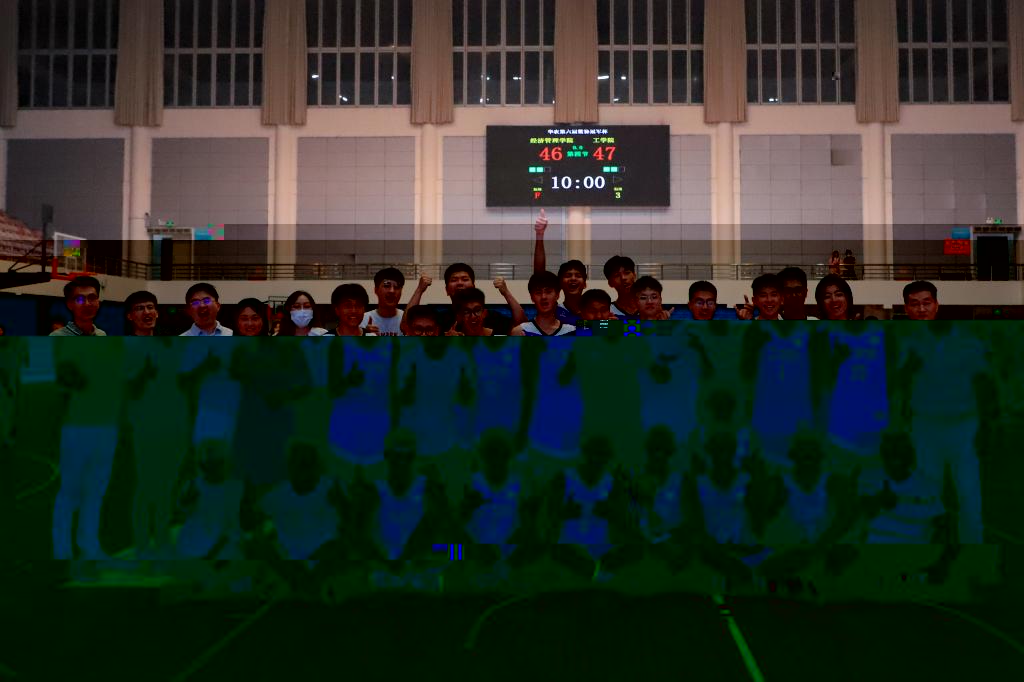 9月29日晚,冠軍杯決賽第二場開賽。提前集合的隊員們自發進行傳球、上籃、投籃等熱身運動,在教練的帶領下複習戰術和防守對策。晚7:00,人聲鼎沸的看台安靜下來。比賽正式開始,隊員們沖勁十足,即刻投入比賽。哨聲一響,經管男籃迅速出擊,先發制人,以矯健熟練的動作配合傳球,直逼籃闆,将球打進,經管暫時領先。yl7703永利在對手猛烈地進攻下抵死防守,不甘示弱,“遠程三分!”yl7703永利2020級小将雷劉宏凱一記三分将比分死咬。随着看台上的陣陣高呼,雙方交錯進球,你追我趕,分秒必争。前三小節結束,經管以10分優勢大比分領先。