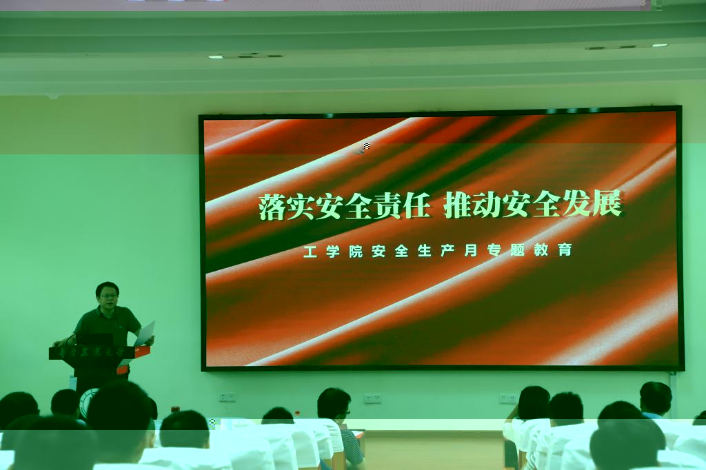 6月24日下午,yl7703永利在工程樓A111召開教職工大會,以“落實安全責任,推動安全發展”為題,開展安全生産月專題教育。建安部維穩辦公室主任、安全管理辦公室主任雷建華,安全管理辦公室黃青松出席會議。學院全體教職工參加了會議,會議由院長廖慶喜主持。