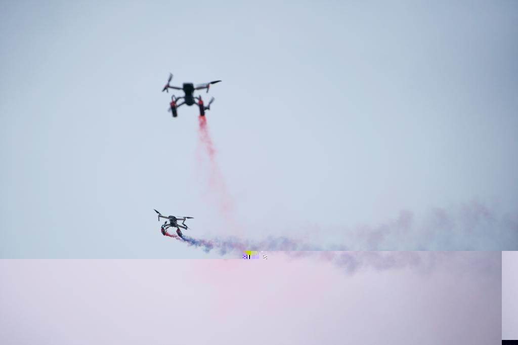 铿锵的鼓聲還在耳畔回響,兩架無人機從獅子山廣場騰空而起,空中瞬間留下數條色彩斑斓的色帶。“哇!”精彩不斷的表演讓觀衆們目不暇接,贊歎連連。