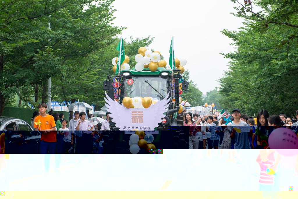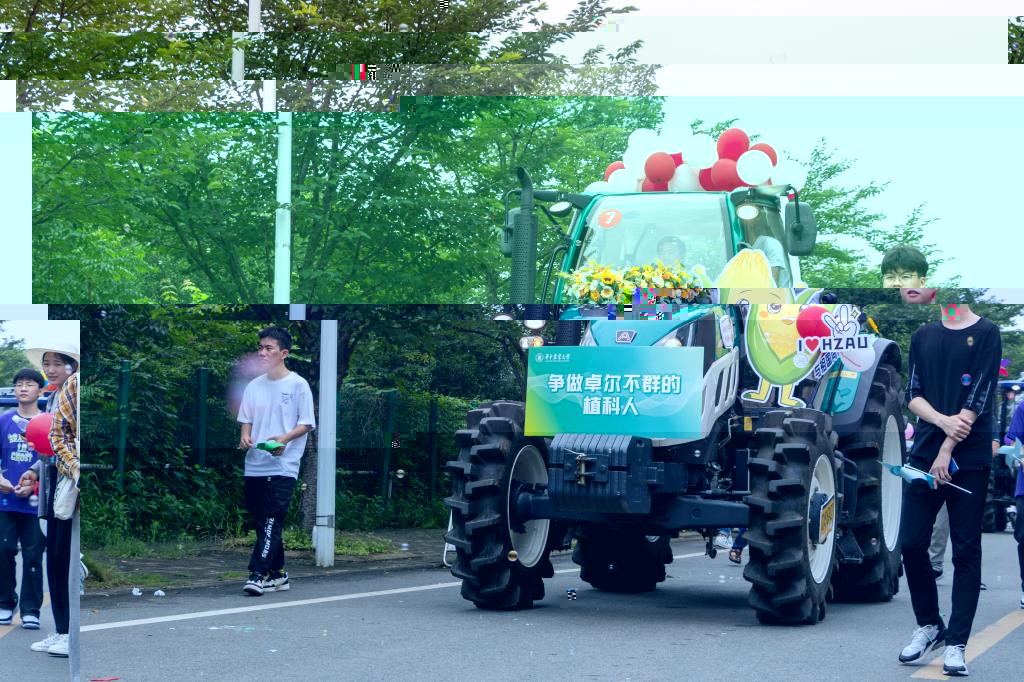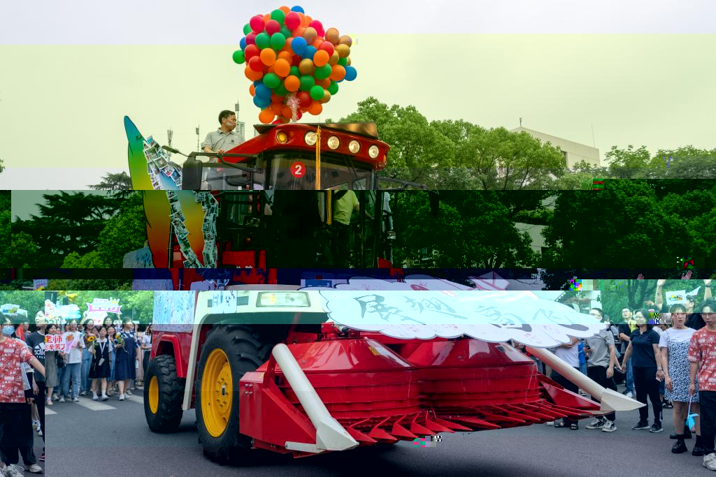 各具特色的巡遊隊伍與機車裝扮吸引了師生們的目光。作為“排頭兵”,yl7703永利畢業生們伴随歌聲踏着輕快的舞步出發,紐荷蘭CX6.80聯合收割機“大黃蜂”緊随其後,機車上,校長李召虎揮舞着校旗,不時與巡遊的師生們熱情互動。偌大的機身上,張貼了象征工業發展的錘子、扳手、螺母等圖案,寓意華農學子不斷發揚大國工匠精神,心系天下、勇于挑戰,在科技創新領域中建功立業。理學院則為機車兩側插上了貼有275張畢業生照片的巨型翅膀,機車前端迎風立有“展翅高飛”四個大字,寓意畢業生展翅高飛,前程似錦。園藝林學學院則以“上海青”和柑橘雕刻成的花瓣模型與鮮花一起,将車頭裝點成“園藝林學學院”字樣,車身與車輪上,春分、夏至、秋分、冬至四個節氣的花果圖案與精美的插畫、各具特色的印章錯落有緻地張貼着,體現了師生們的團結奮進及學院為持續創造美好生活而付出的努力。水産學院将機車車頭裝飾成藍色鲸魚模樣,引擎蓋上多彩氣球将車頭裝點成噴泉狀,機車身後是一張形如披風的“捕夢網”,網上挂滿了畢業生們大學生活的點滴和感悟,寓意畢業生們在新的廣闊海洋暢然遨遊。植物科學技術學院畢業巡遊花車以“感恩·繼續前行——争做卓爾不群的植科人”為主題,通過麥穗、玉米等系列元素的裝扮,寓意畢業生牢記國家和學校的殷切囑托,以強農興農為己任,做卓爾不群的植科人。動科動醫學院機車以牛的形象進行整體設計,車頭最前方,小豬玩偶和動物疫苗的立體形象赫然醒目,代表了華農“六個一”中的優質種豬和動物疫苗,寓意畢業生們傳承創新、創造、創業精神。經濟管理學院則以《國富論》《資本論》兩本經管類學科經典讀物裝飾着車窗,機車兩側的風車迎風轉動,畢業生們則騎車緊随其後,寓意畢業生在追逐人生夢想的道路上永葆前進動力。