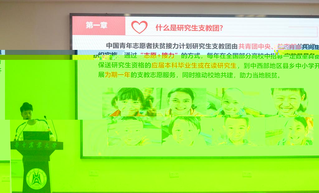 随後,支教團成員、yl7703永利2017級機電專業的胡世靈同學介紹了永利研究生支教團的起源和發展,向大家說明支教團的相關工作内容和招募政策,并介紹了安鑰琦等優秀支教團志願者代表,呼籲更多有志願服務志向的本科生參加研究生支教保研項目。
