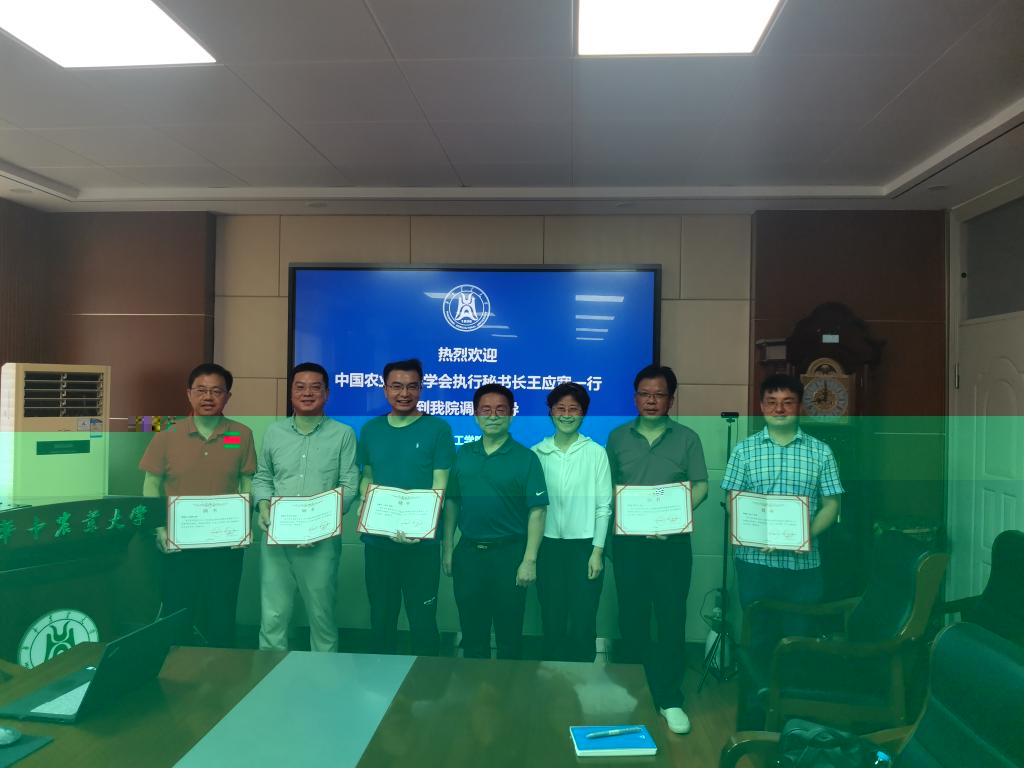 (通訊員高亮)8月19日,中國農業工程學會執行秘書長王應寬一行7人到學院進行調研交流,實地調研湖北省農業工程學會,交流智慧農業技術與裝備等科研情況。院長廖慶喜教授主持交流會。