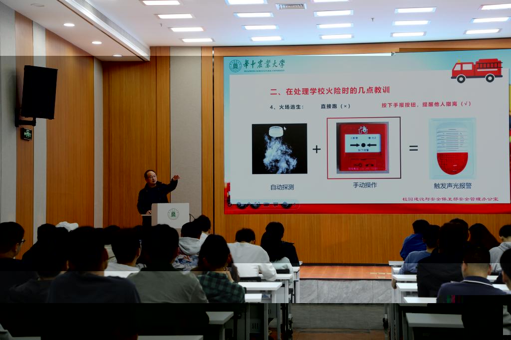 黃青松老師從“校園風險情況介紹”、“處理學校風險時的幾點教訓”、“常見火災設備介紹”、“初期火災處理”、“火場基本逃生知識”等五個方面為現場師生進行了消防安全知識培訓,用慘痛的警示案例和現場視頻直觀地向師生展示實驗室安全運行管理的極端重要性和科學的應急處理措施。