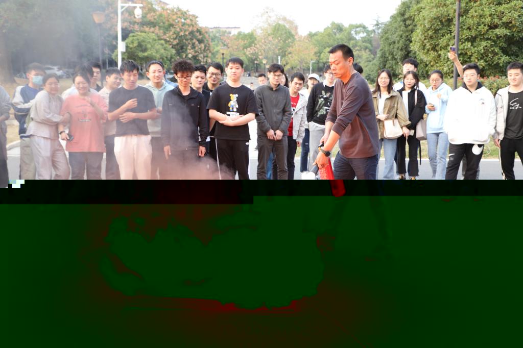 培訓結束後,參會師生在新工科大樓旁進行消防安全現場演練。建安部負責人向師生介紹了滅火器的使用方法,并設置模拟“火場”,手把手指導師生進行“滅火”實戰,學習掌握滅火技能。
