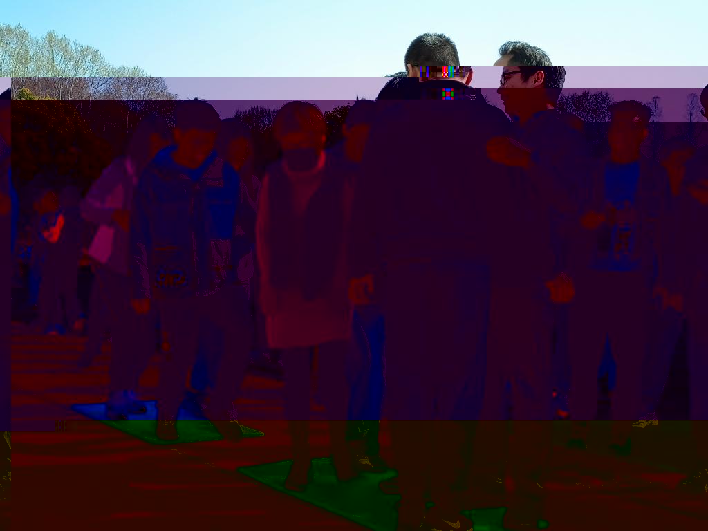 在“搭橋過河”比賽現場,各組隊伍團結互助、默契配合,師生攜手,你拉着我、我拉着你,最終順利過河;賽場上隊員拼盡全力,賽場下喝彩此起彼伏。