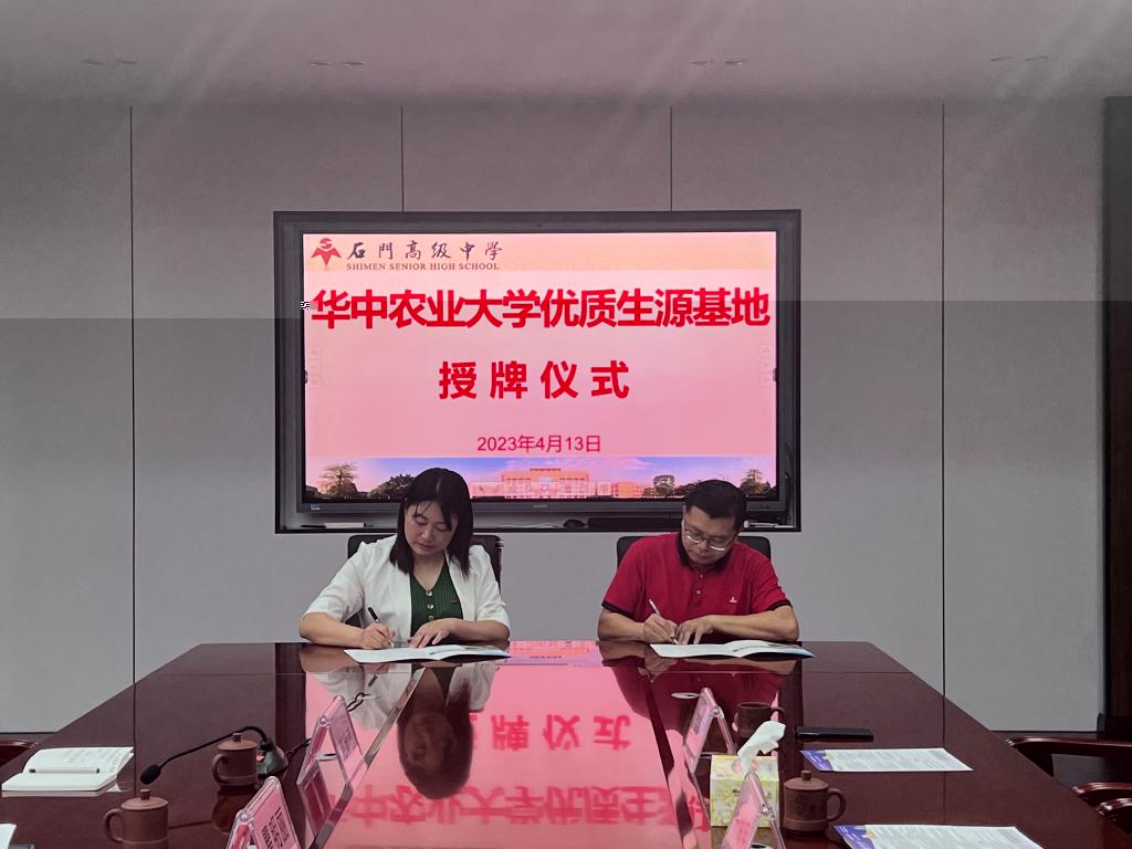 在石門高級中學授牌簽約儀式上,校副書記、副校長鐘海明代表中學對我校的到來表示歡迎。座談會上,他詳細介紹了學校的辦學曆史、學生培養、師資力量和教學情況。他談到,希望通過優質生源基地加強兩校合作,共同做好優質生源的推薦和培養工作。