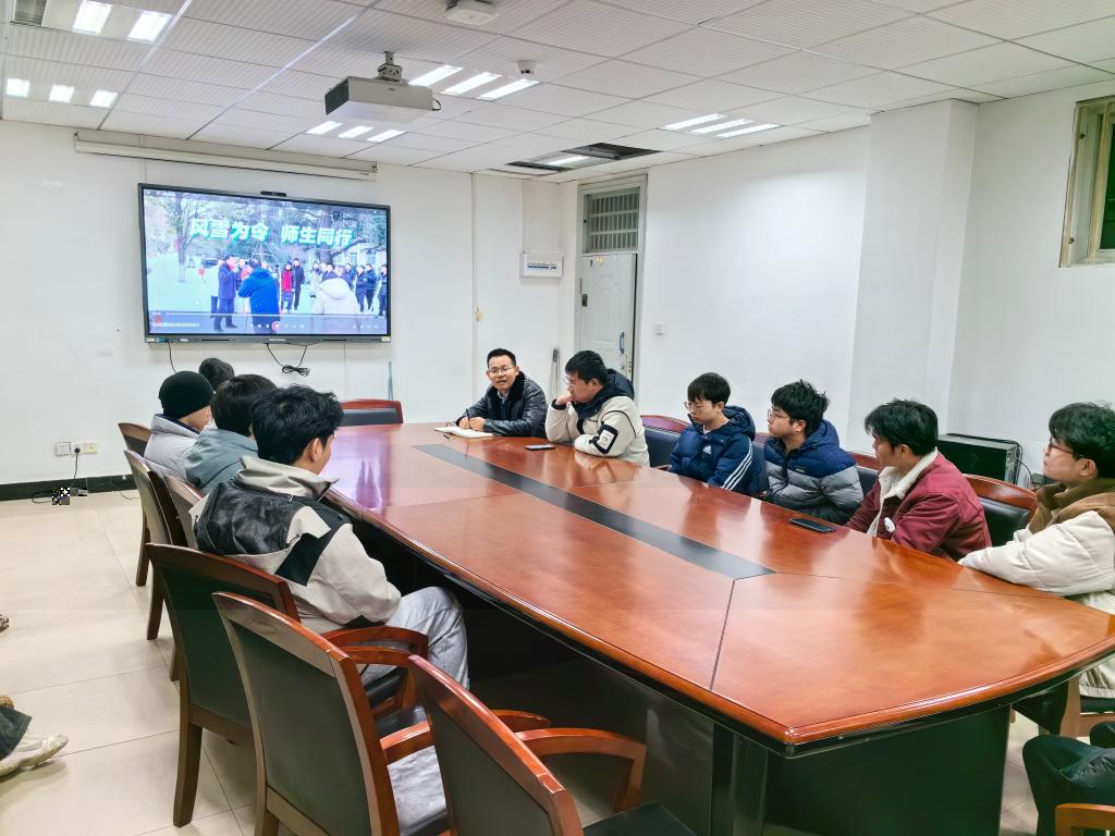 在班會開始前,油菜機械化生産技術與裝備團隊1班同學們在廖宜濤教授的帶領下對新工科樓下人行道的雪進行了清理,為開來往行人鏟出一條可安全通行的道路。廖宜濤對同學們鏟雪的辛苦付出表示感謝,他談道:“新年伊始,我們也進入了新的一輪研究進程,希望各位同學能夠多和老師及師兄師姐請教,掌握研究規律,把握自身節奏。”