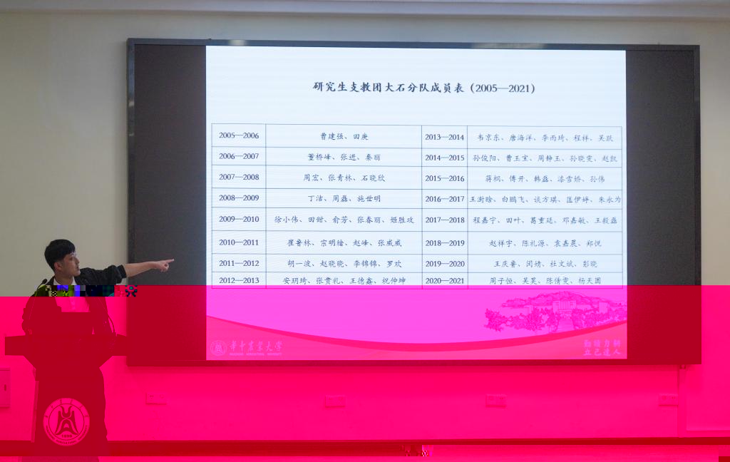 支教團成員趙祥宇同學分享了自己 “一路學習、一路探尋” 的支教故事,講述了在支教志願服務過程中,志願者們了解實際情況、發現學生需求、幫助學生成長的動人故事,旨在說明研究生參與支教的過程,不僅是服務鄉村基層建設、振興鄉村教育事業的過程,更是讓個人的綜合能力有所提升、得到切實成長發展的過程,鼓勵大家積極加入支教團,收獲感動和成長。